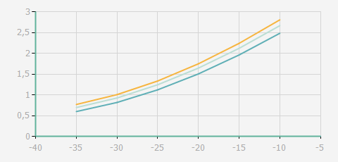 | 蒸發(fā)溫度 | 制冷量+/-5% | 能耗+/-5% | 現(xiàn)在能效+/-5% | 氣體流速+/-5% | 能效+/-7% | ||||