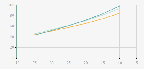| 蒸發溫度 | 制冷量+/-5% | 能耗+/-5% | 現在能效+/-5% | 氣體流速+/-5% | 能效+/-7% | ||||