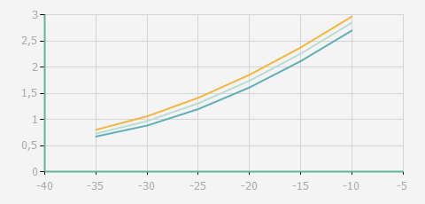 | 蒸發(fā)溫度 | 制冷量+/-5% | 能耗+/-5% | 現(xiàn)在能效+/-5% | 氣體流速+/-5% | 能效+/-7% | ||||